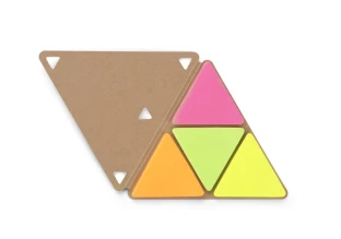 Wewnątrz znajduje się 25 sztuk karteczek w 4 kolorach: pomarańczowym, różowym, zielonym, żółtym.