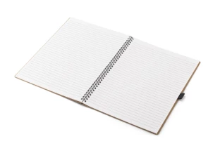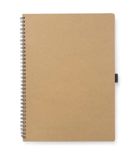 Klasyczny notes na spirali w papierowej, brązowej okładce wraz z miejscem na długopis. Kartki w notesie wykonane są z papieru kamiennego. Papier ten jest wyjątkowo wytrzymały i odporny na wilgoć. Kartki w linie.